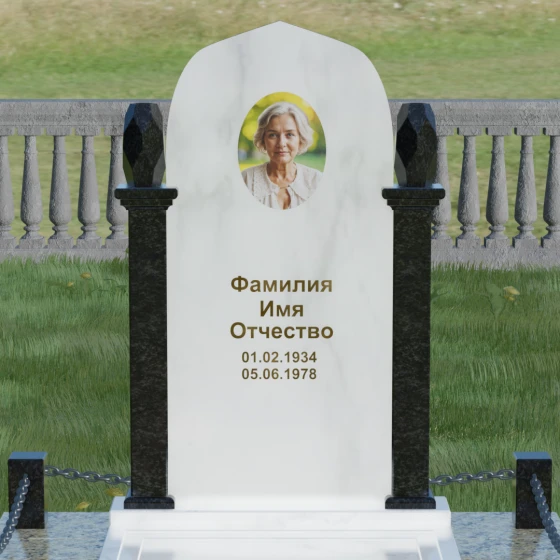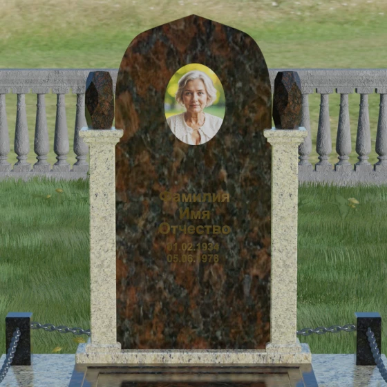 Форма купола или арки в мемориальной архитектуре традиционно символизирует небесный свод и переход души в лучший мир. Это образ защиты и вечного крова, который мы дарим близкому человеку в его последнем пристанище. Колонны, обрамляющие памятник, олицетворяют духовную опору и стойкость характера, а также преемственность поколений. Каждая деталь здесь — от четких линий основания до изящных верхушек — говорит о нерушимой связи между прошлым и настоящим, о покое, который наконец обрела душа, и о той защите, которую память живых обеспечивает ушедшим.