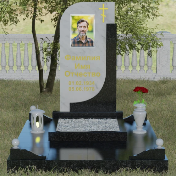 Кому подойдет: Данная модель является универсальной и гармонично впишется в мемориальный комплекс как для мужчины, так и для женщины. Асимметричная форма с плавным изгибом придает памятнику определенную легкость, что часто выбирают для оформления захоронений матерей или жен. В то же время строгая вертикальная колонна и золоченая символика делают его подходящим для увековечивания памяти отца, брата или главы семейства. Это выбор тех, кто ценит эстетику минимализма, надежность натуральных материалов и хочет подчеркнуть преемственность поколений и крепость семейных уз.