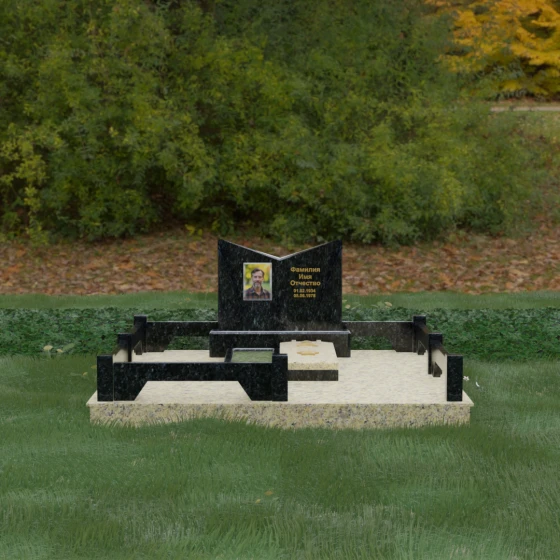 Кому подойдет: Данный мемориальный комплекс разработан для тех, кто хочет подчеркнуть особые заслуги и статус близкого человека. Строгая геометрия, наличие рельефных звезд на плите и форма «раскрытой книги» делают это надгробие идеальным выбором для оформления захоронения военного, ветерана, государственного служащего или человека, чей жизненный путь был примером стойкости и мудрости. Это выбор тех, кто ценит надежность, эстетическую завершенность и безукоризненное качество исполнения, которое останется неизменным для многих поколений.