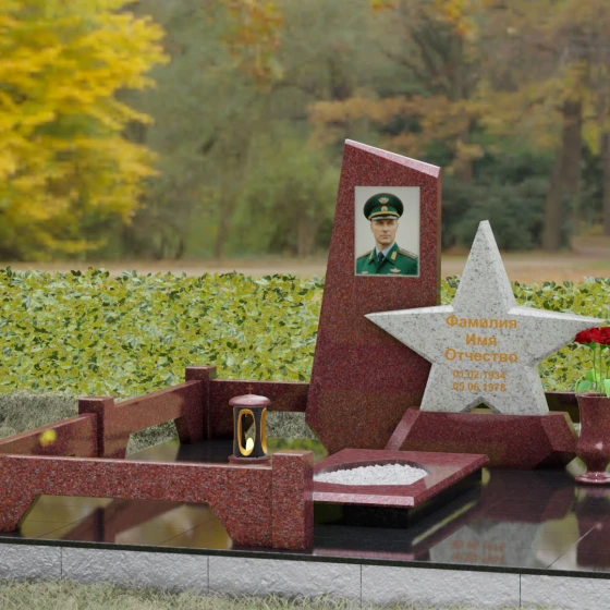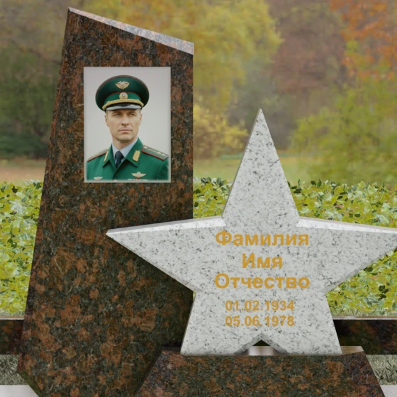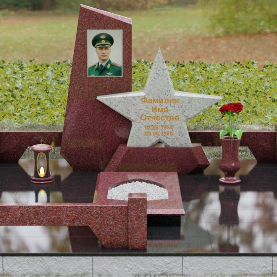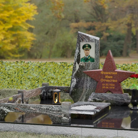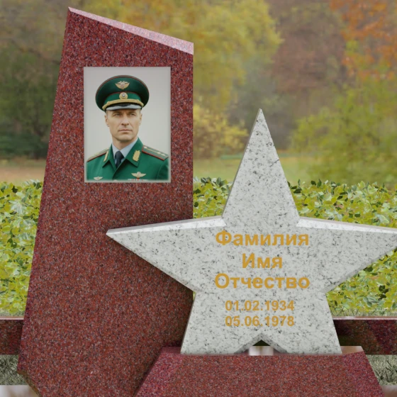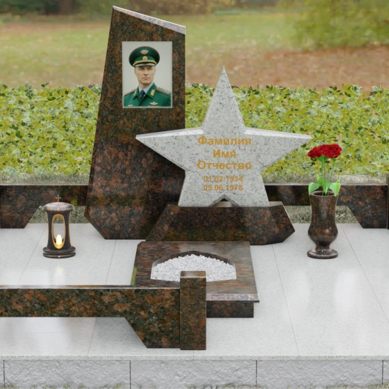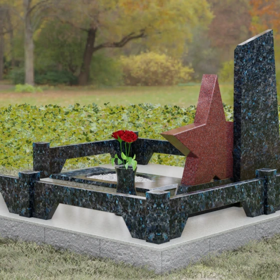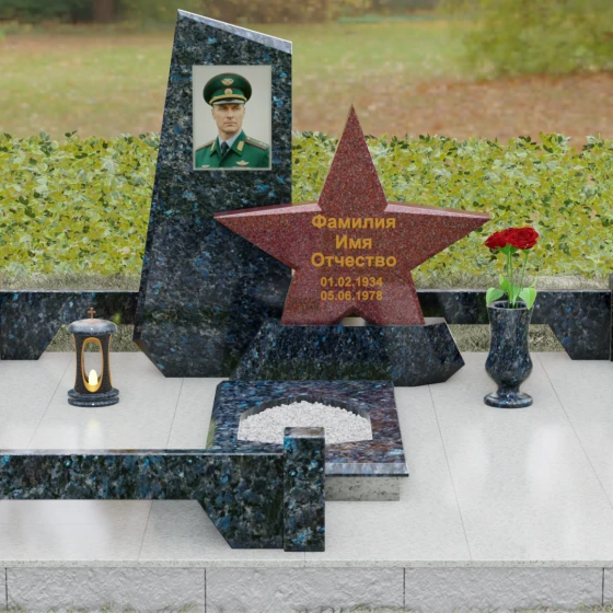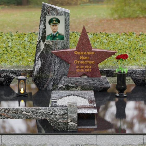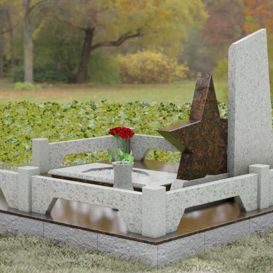 Кому подойдет: Это ритуальное изделие станет достойным выбором для увековечивания памяти военного, ветерана боевых действий или человека, чья профессиональная деятельность была связана с защитой Отечества. Символика звезды в сочетании со строгими линиями олицетворяет мужество, честь и верность идеалам. Благодаря своей величественной форме и архитектурной сложности, такой ансамбль подойдет для установки на почетном месте захоронения главы семьи, подчеркивая его высокий статус и значимость для потомков.