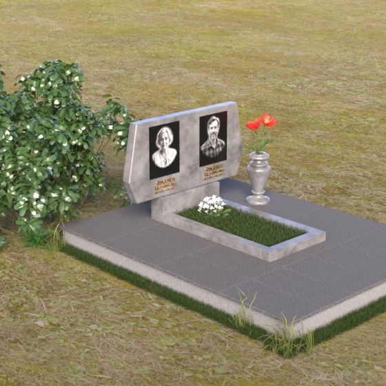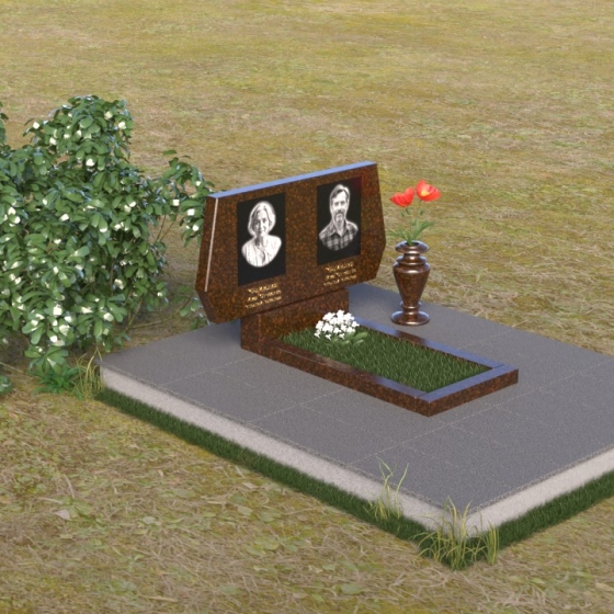 Представляем вам ритуальное изделие – памятник на могилу (Артикул: ПГ018), архитектурное решение, в котором строгость линий сочетается с глубоким символизмом. Это не просто надгробие, а осязаемое воплощение уважения и вечной памяти об ушедшем человеке. Стела, выполненная в форме сдержанного прямоугольника, слегка расширяющегося кверху, символизирует восхождение души к небесам. Грани камня тщательно обработаны, создавая игру света и тени, подчеркивающую монументальность и значимость этого места памяти. Слева и справа, верхние углы стелы имеют элегантные скосы, смягчающие строгость формы и придающие ей утонченность. На зеркальной поверхности камня выгравированы портреты усопших, их имена и даты жизни, выполненные с безупречной точностью и вниманием к деталям. Под портретами располагаются лаконичные надписи, выполненные строгим шрифтом, добавляющие памятнику сдержанности и достоинства. Дополнительная горизонтальная плита, расположенная перед стелой, создает ощущение завершенности и служит местом для возложения цветов или свечей. Этот элемент композиции выполнен в той же стилистике, что и основная стела, поддерживая общую гармонию и пропорциональность мемориального комплекса.
