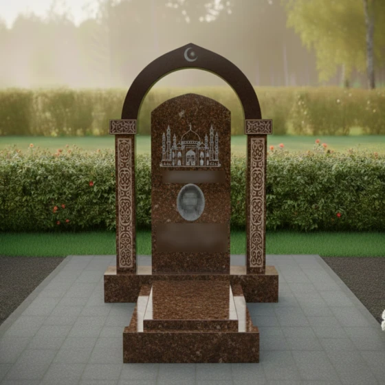 Кому подойдет: Данное архитектурное решение станет идеальным выбором для тех, кто ищет достойный способ выразить почтение к мусульманским традициям. Модель 726 одинаково гармонично подойдет для мужского и женского захоронения, благодаря своей сбалансированной геометрии. Это выбор семей, которые ценят фундаментальность, эстетическую завершенность и стремятся создать на месте памяти атмосферу святости, тишины и глубокого уважения к корням.