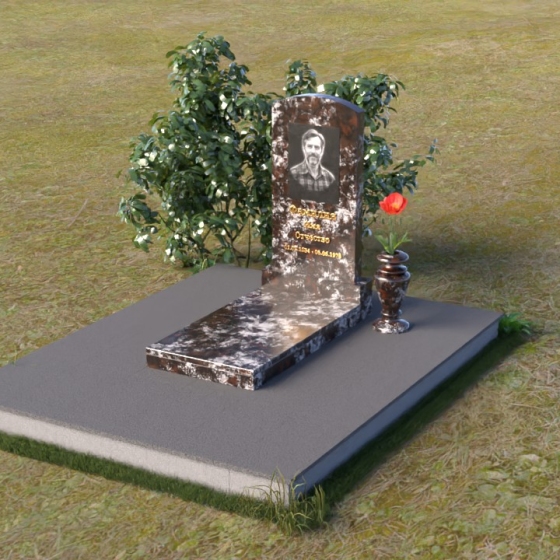 Благодаря своей лаконичной форме, эта стела предоставляет широкие возможности для оформления. Портрет усопшего будет гармонично смотреться как в верхней части стелы, так и чуть ниже центра. Золотое тиснение имени и дат жизни будет элегантно выделяться на фоне полированного камня, создавая четкий и легко читаемый образ. Небольшая тумба, расположенная перед стелой, может служить местом для возложения цветов и памятных вещей. Мы рекомендуем выбирать для этой модели сдержанные, лаконичные шрифты, которые подчеркнут общую элегантность композиции. Подумайте о возможности добавления небольшого бронзового барельефа или скульптуры, отражающей профессию или увлечения ушедшего человека. Это добавит индивидуальности и сделает место памяти еще более личным и значимым. Ваза, выполненная в едином стиле с монументом, завершит композицию и придаст ей законченный вид.