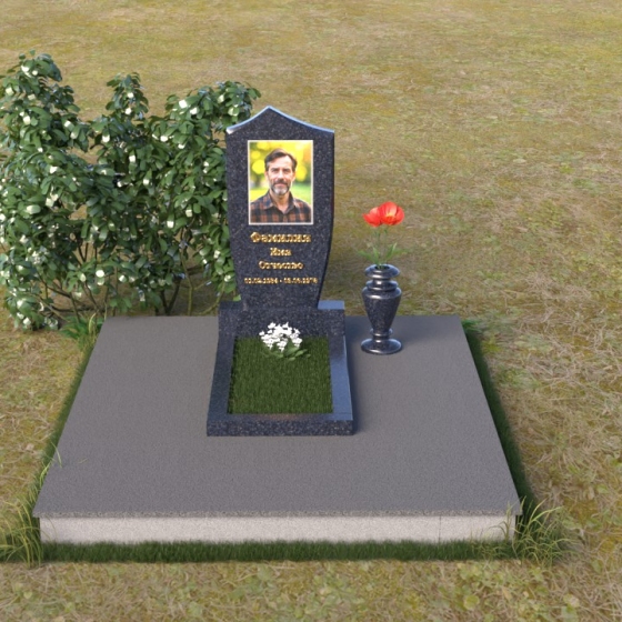 Оформление: Для данной формы стелы идеально подойдет гравировка портрета усопшего в верхней части. Имя, отчество, фамилию и даты жизни можно разместить ниже портрета, используя строгий, лаконичный шрифт. Золотое напыление букв создаст элегантный контраст с черным гранитом и подчеркнет важность информации.