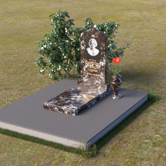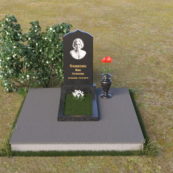 Форма этого гранитного монумента идеально подходит для размещения портрета усопшего. Благодаря своей вытянутой форме, он позволяет создать гармоничную композицию, где портрет будет занимать центральное место и привлекать к себе внимание. Золотое начертание имени и дат жизни на фоне темного полированного гранита выглядит особенно торжественно и выразительно. Вы можете выбрать любой из восьми доступных вариантов камня, чтобы подчеркнуть индивидуальность образа и создать памятник, который будет полностью соответствовать вашим представлениям о красоте и гармонии. Гранит амфиболит с его неповторимыми разводами, Балтик грин с его мягким зеленым оттенком, Блю Перл с его искрящимися вкраплениями, Габбро-диабаз с его глубоким черным цветом, Дымовский с его теплым коричневым оттенком, Лезниковский с его насыщенным красным цветом, Мансуровский с его светлым и благородным видом, или же классический мрамор Тассос – каждый из этих камней обладает своим уникальным характером и способен передать всю глубину ваших чувств. Подберите камень, который лучше всего отражает характер человека, которому посвящен этот гранитный монумент.