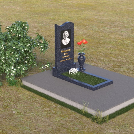 Под стелой располагается горизонтальная плита, также выполненная из полированного гранита, создающая ощущение завершенности и гармонии. Ее зеркальная поверхность отражает небо и облака, словно стирая границу между земным и небесным. Вместе стела и плита образуют единый ансамбль, который органично вписывается в ландшафт, подчеркивая красоту и умиротворение места захоронения. Черный цвет гранита символизирует скорбь и уважение, а его плотная структура гарантирует долговечность и устойчивость к любым погодным условиям. Этот памятник – достойное обрамление памяти о близком человеке, которое будет служить напоминанием о его жизни для будущих поколений.